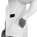 Due to its high stretchability, the jacket has been shaped and sized to fit close to your skin. It sits just over the navel, high on the hips and dropped above the tail bone which prevents over puckering when bent over the bike and zero bounce when running. When fully zipped up, the jacket's tech-fleece acts like a natural insulating barrier that feels quite surprisingly like a warm and breathable second skin.